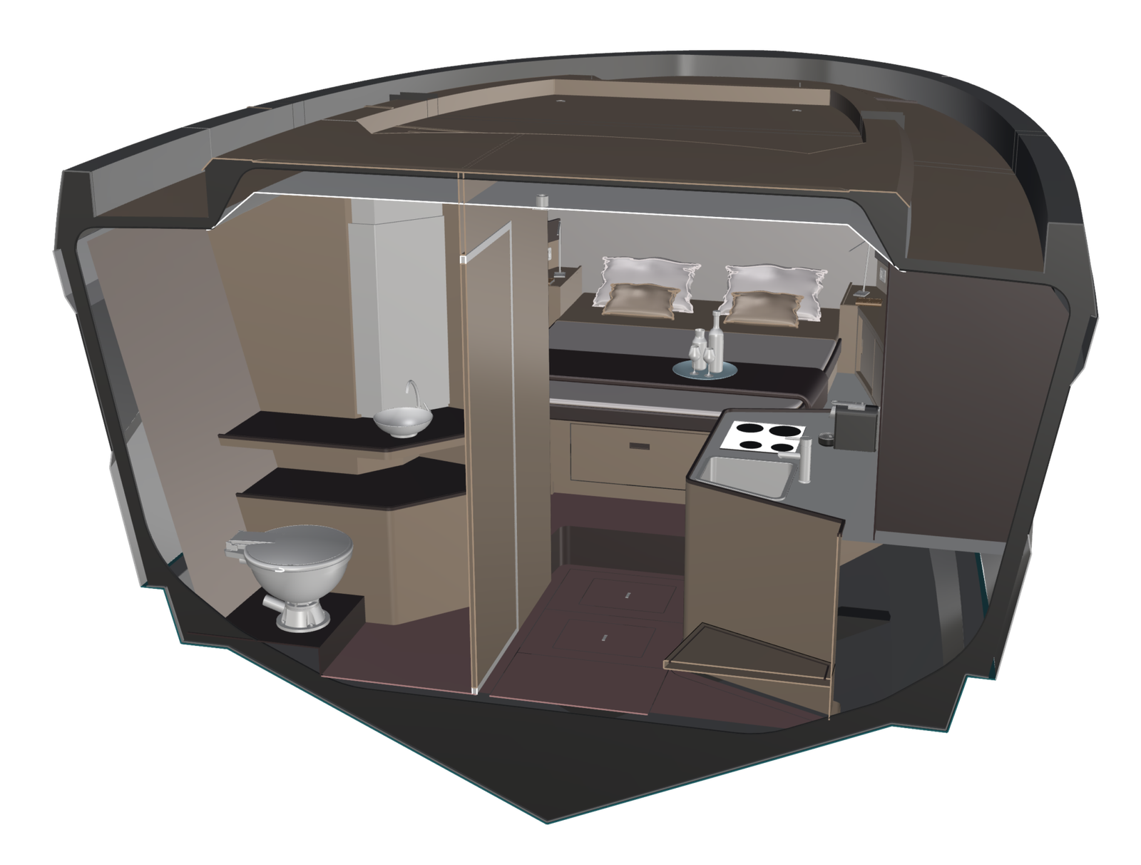 Interior design focused on constrained environments such as yachts and motorhomes, where space efficiency, circulation, and usability are critical.